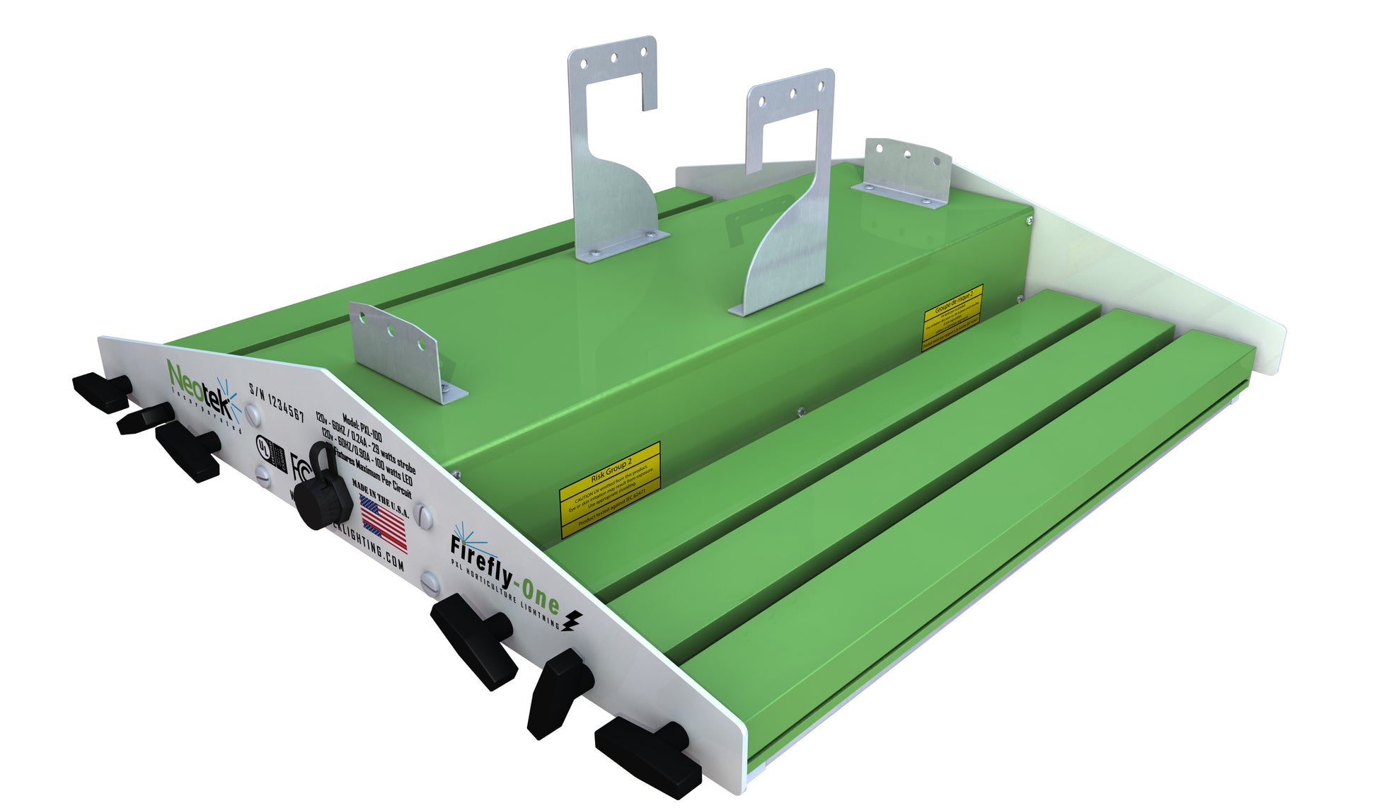The PXL-100 Fixture features the pulsing full-spectrum Xenon light with a specialized focused lens on a circuit that can be set to a timer. The wiring design allows the fixture to be daisy chained in the greenhouse to control the light dispersion. Because the LED strips can be rotated, they provide light to more areas in the greenhouse. The additional LEDs are on a separate circuit, allowing growers to adjust the scheduled on/off for maximum efficiency. Each fixture consumes up to 100-Watts of energy.